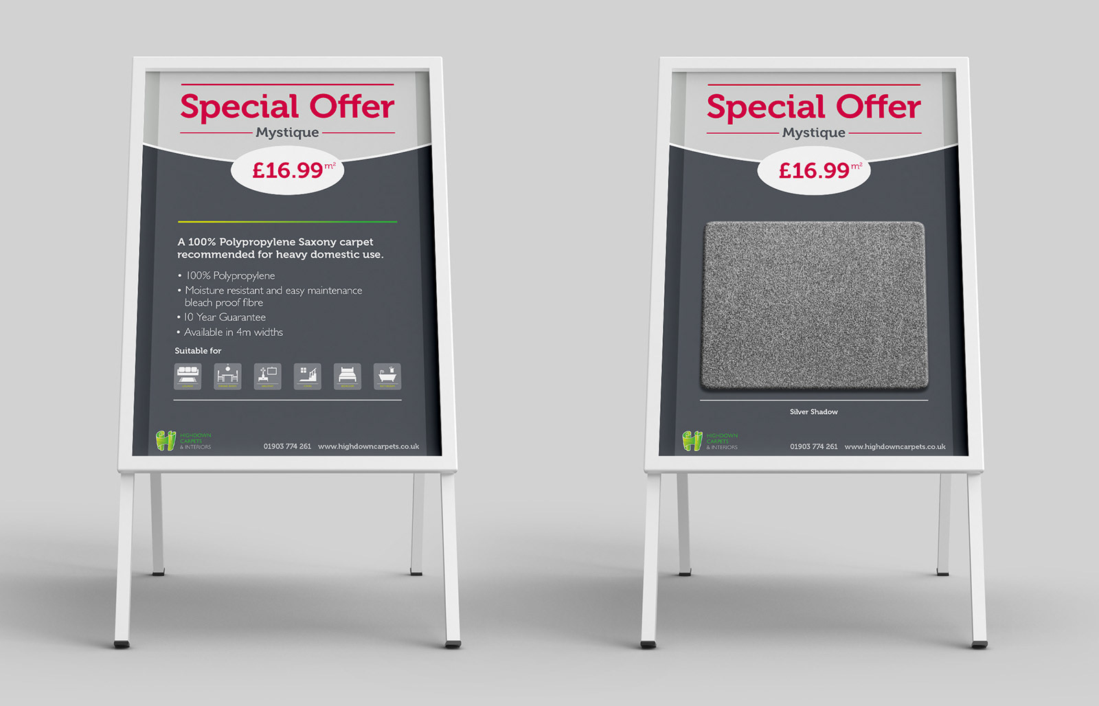Highdown Carpets & Interiors supply and fit quality carpets and floor coverings in homes and businesses in West Sussex. The project consists of a wide range of branding materials.